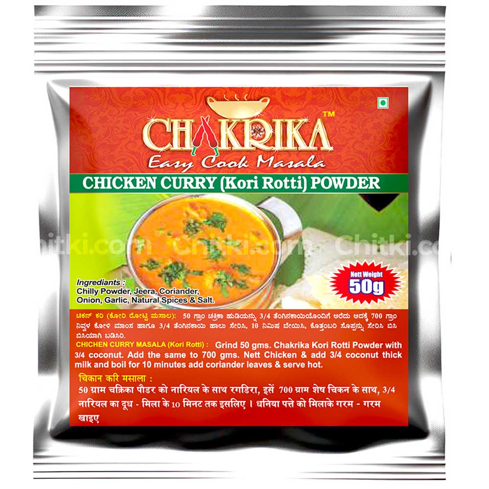 CHICHEN CURRY MASALA (Kori Rotti): Grind 50 gms. Chakrika Kori Rotti Powder with